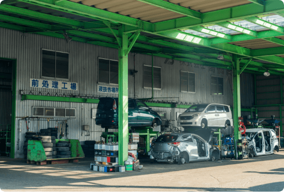 中古車として扱えない車や車検切れの車も、自社で解体して部品を再利用。次の誰かの修理部品に生まれ変わります。